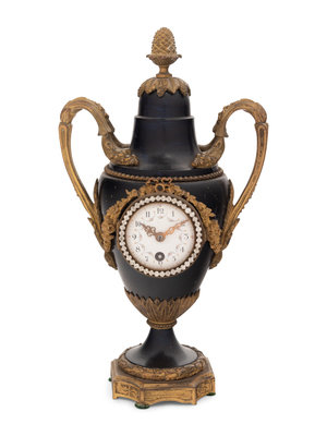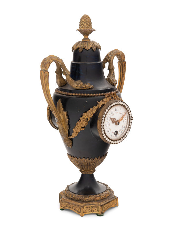A French Gilt Bronze and Painted Tôle Clock