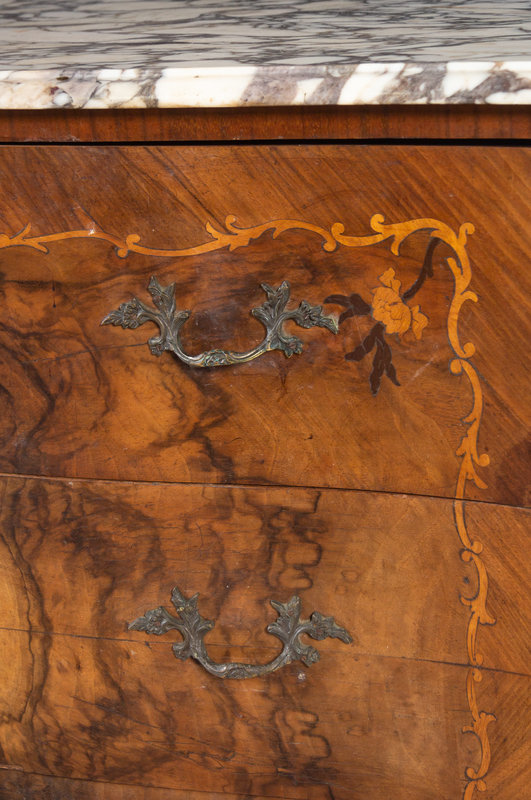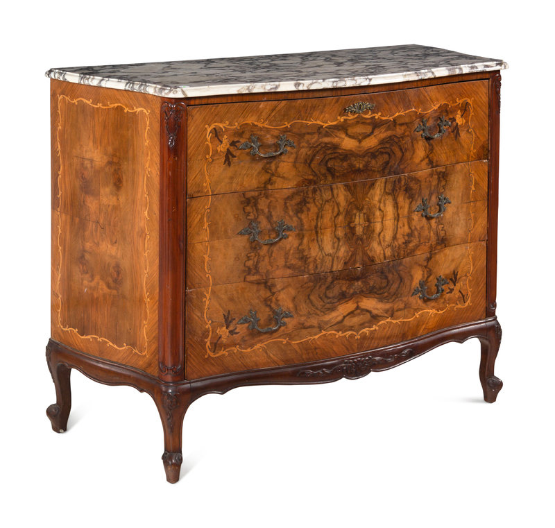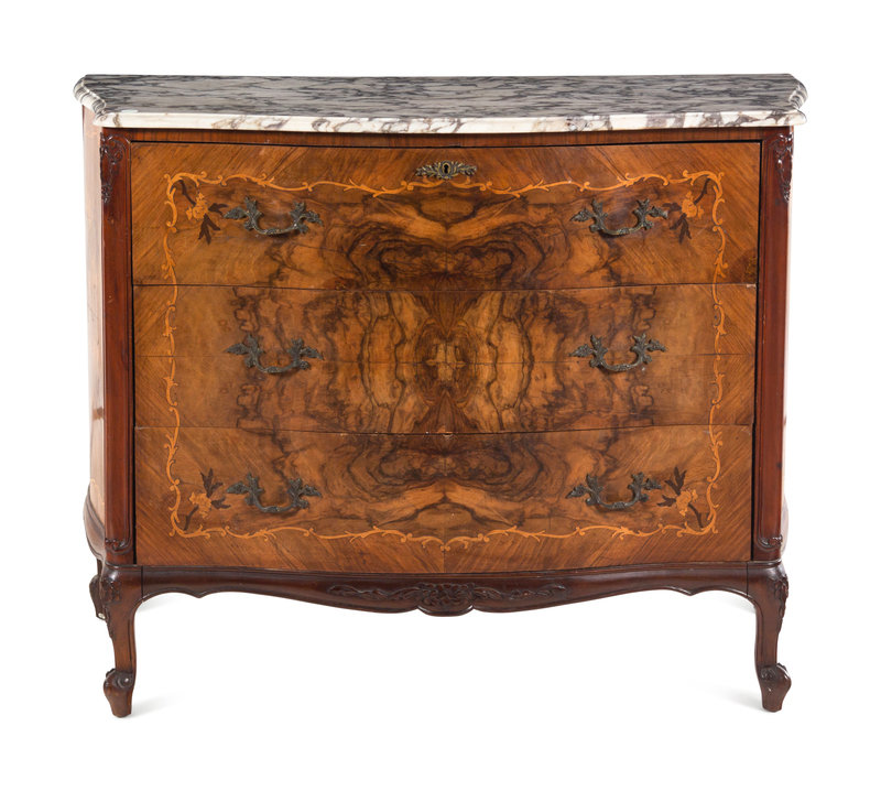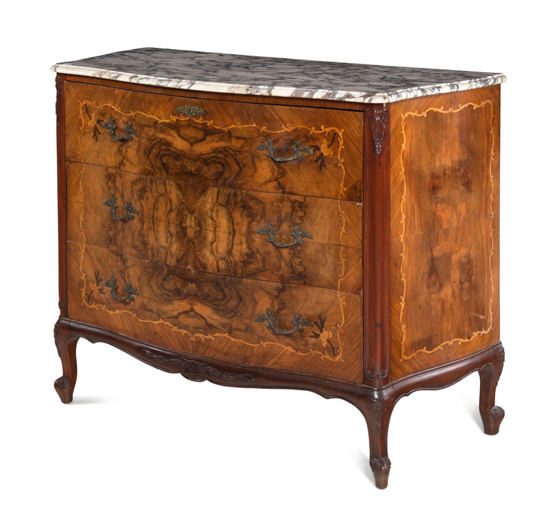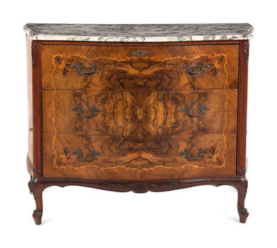 An Italian Marquetry Marble-Top Secretary Commode