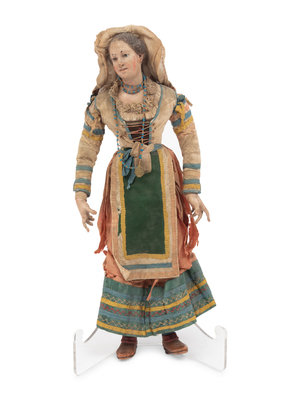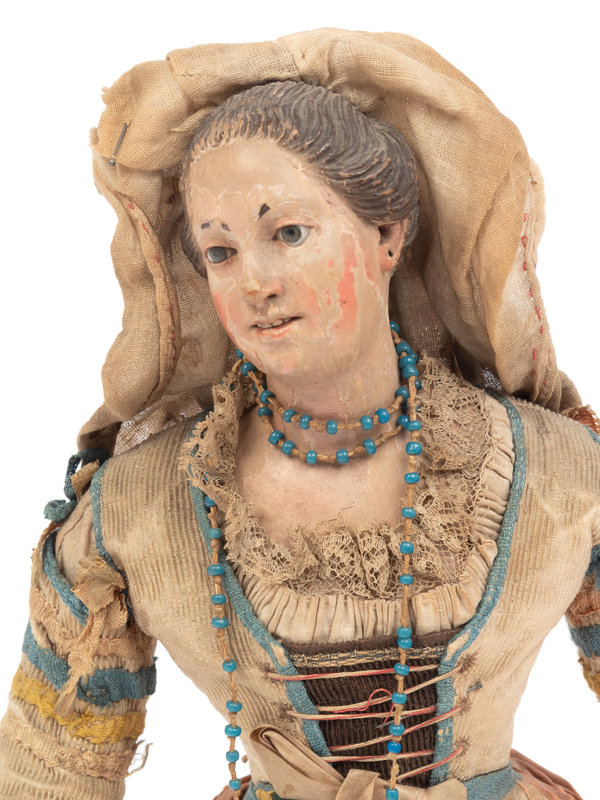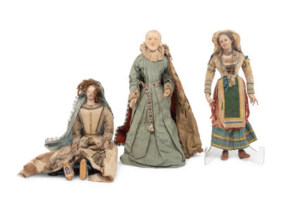 Three Italian Carved and Polychromed Wood and Gesso Crèche Figures