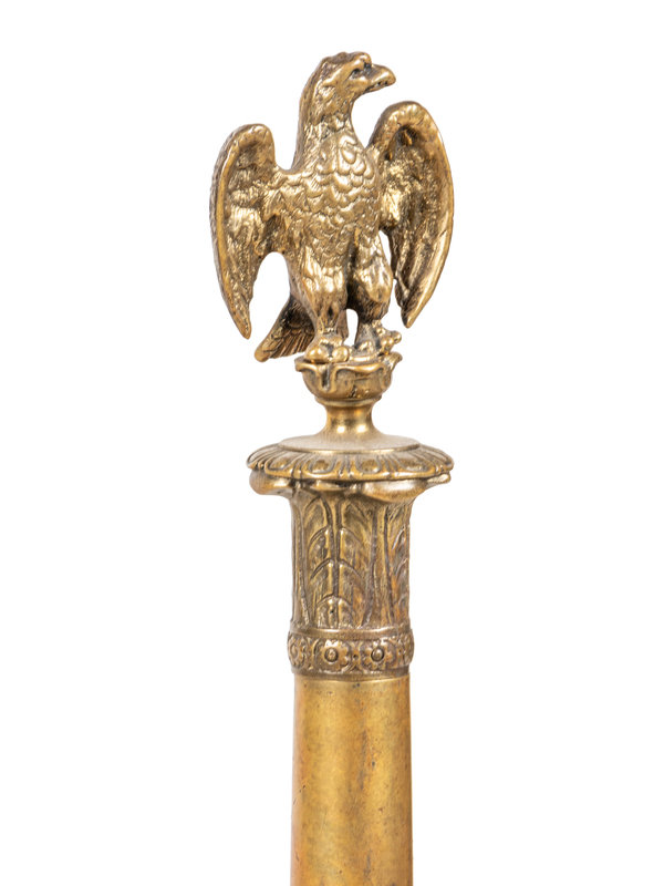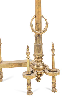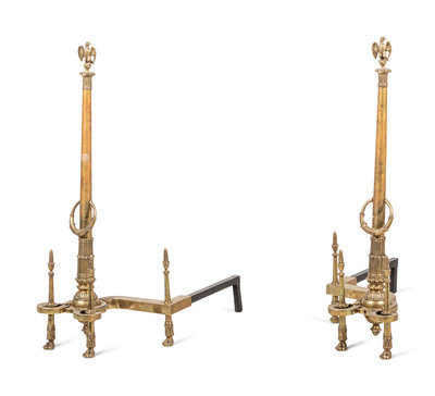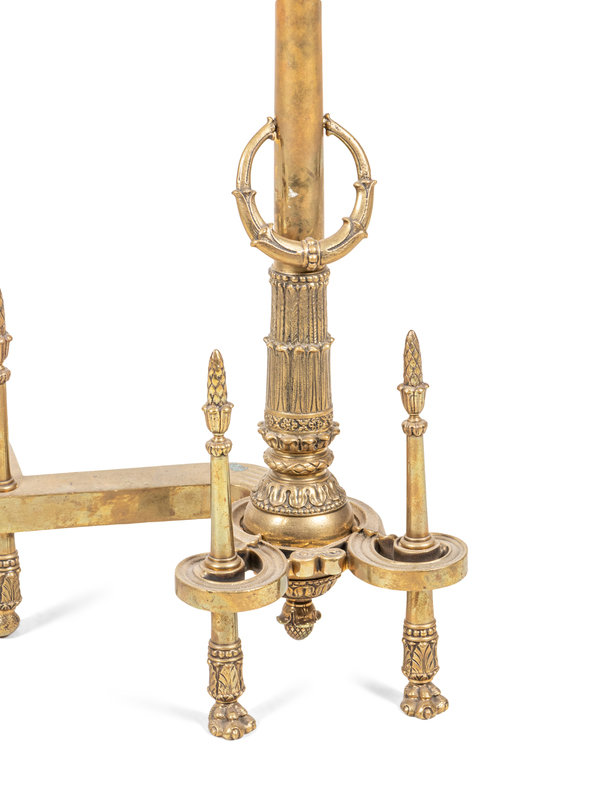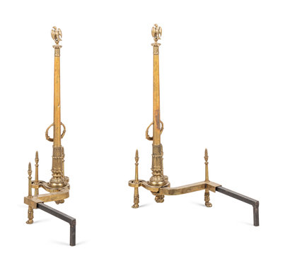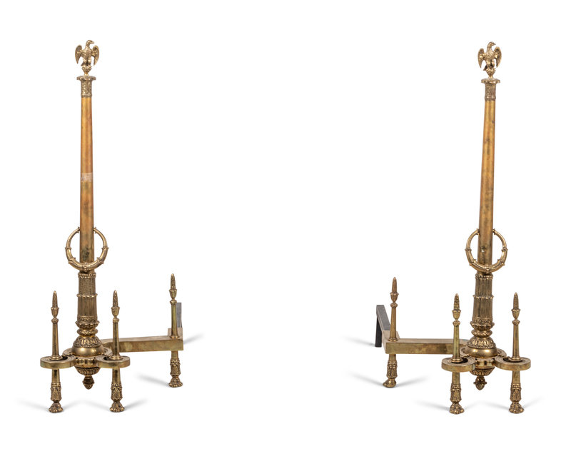 A Pair of Neoclassical Gilt Bronze Andirons with Wreath Ring Handles