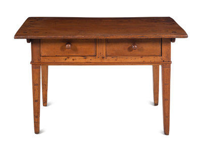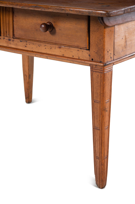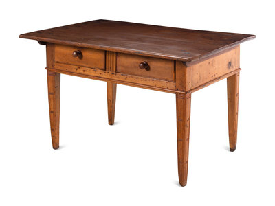 A Continental Fruitwood Lift-Top Two-Drawer Table