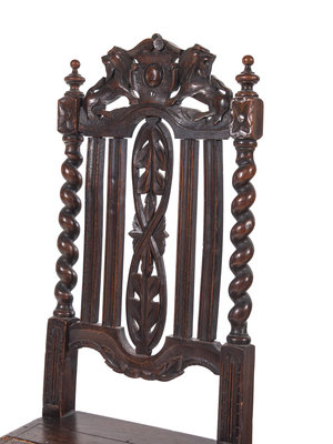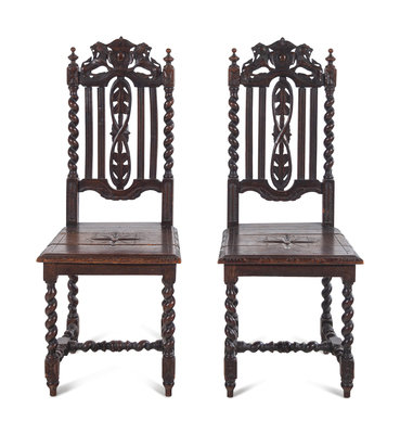 A Pair of Renaissance Revival Carved Oak Side Chairs