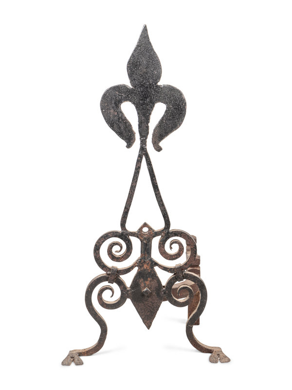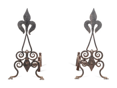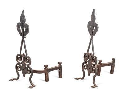 A Pair of Continental Iron Fleur-de-Lis Andirons