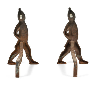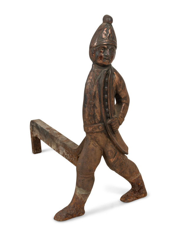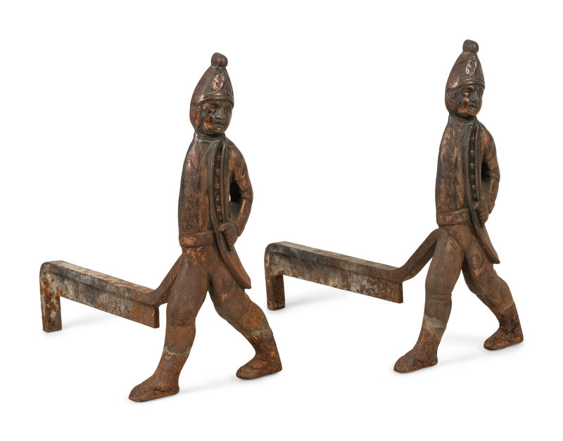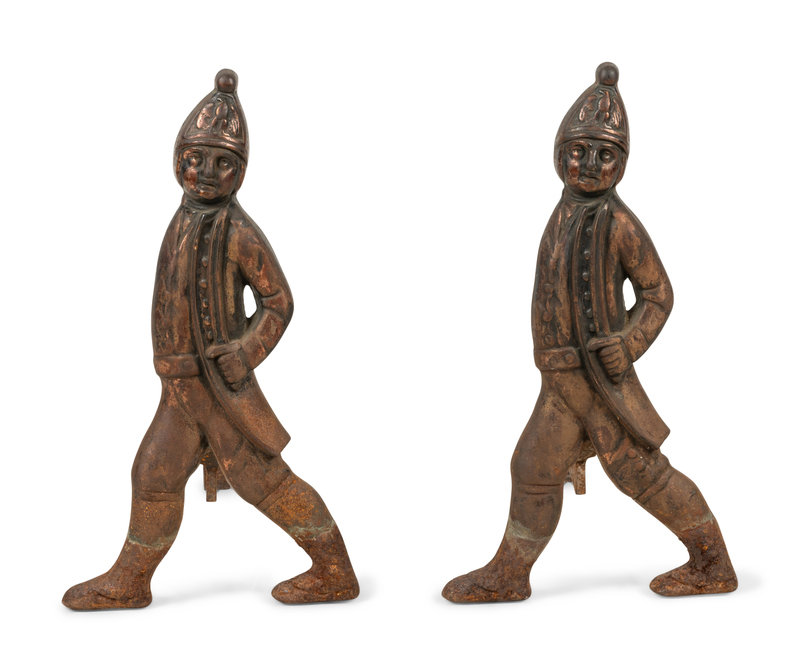 A Pair of Iron Andirons with Hessian Soldiers