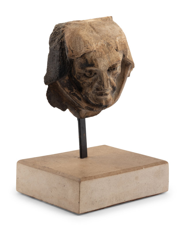 A Continental Carved Stone Head