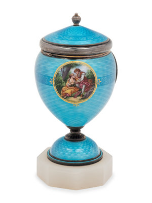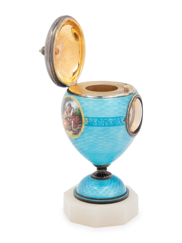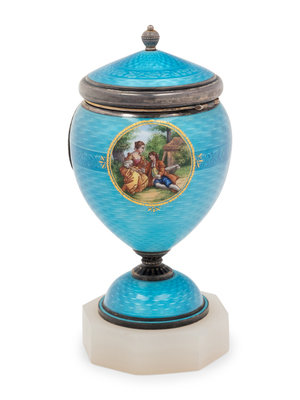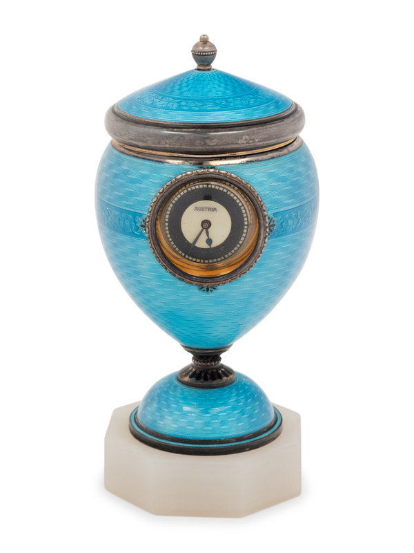 An Austrian Guilloché Enamel Silver Clock
