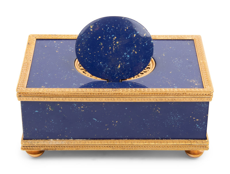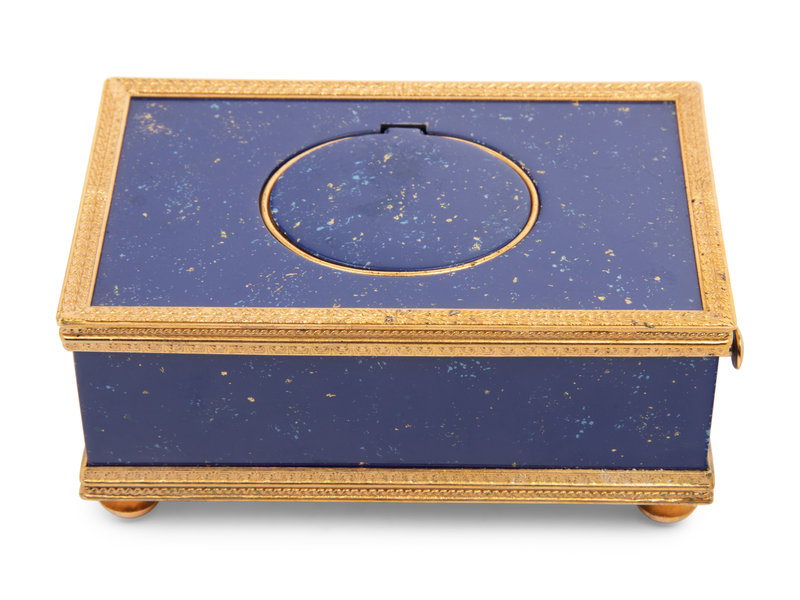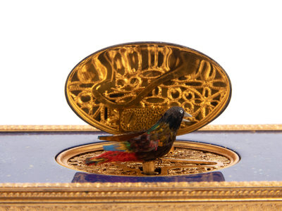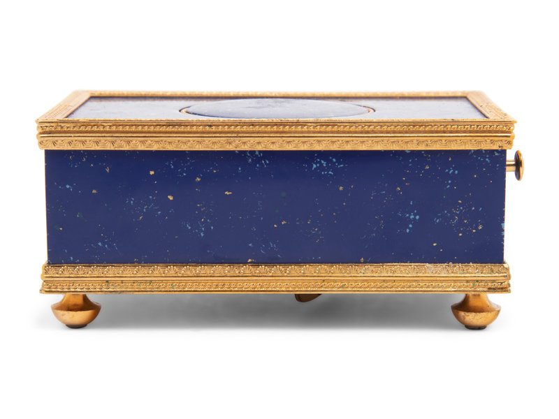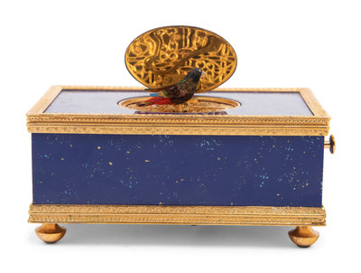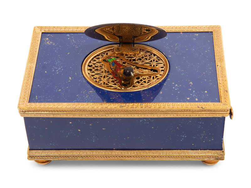 A Swiss Gilt Metal Mounted and Simulated Lapis Lazuli Singing Bird Box