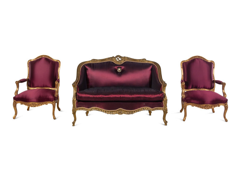A Louis XV Style Giltwood Three-Piece Seating Suite