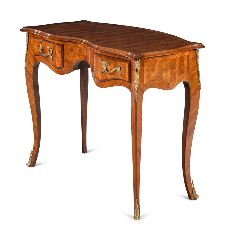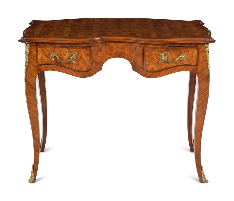 A Louis XV Style Gilt Metal Mounted Parquetry Desk