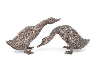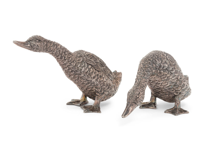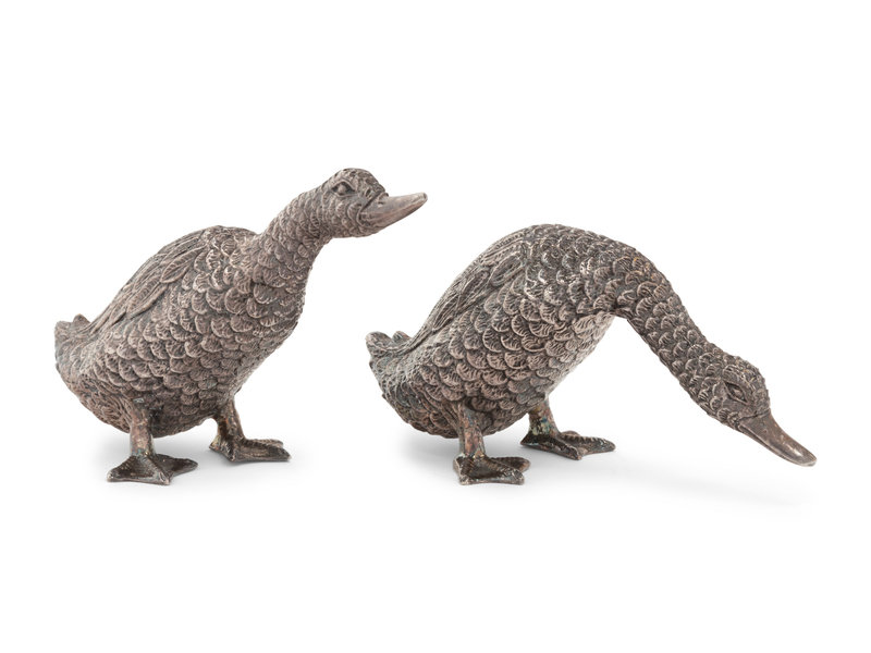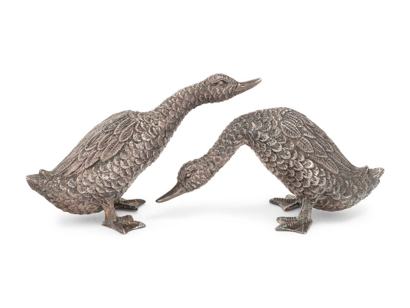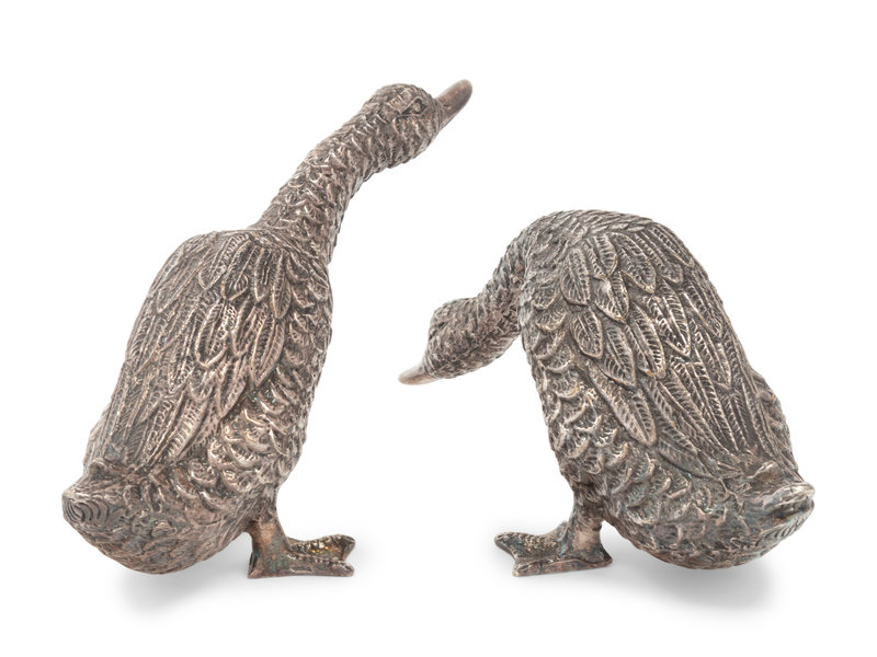 one example stamped STERLING .925 to the underside of one foot, the other stamped .925 to the underside of one foot.