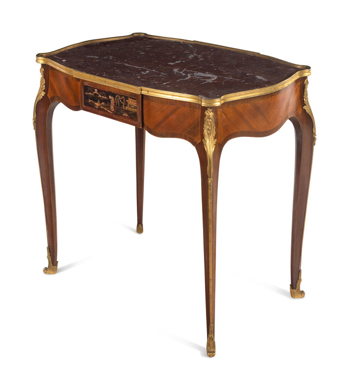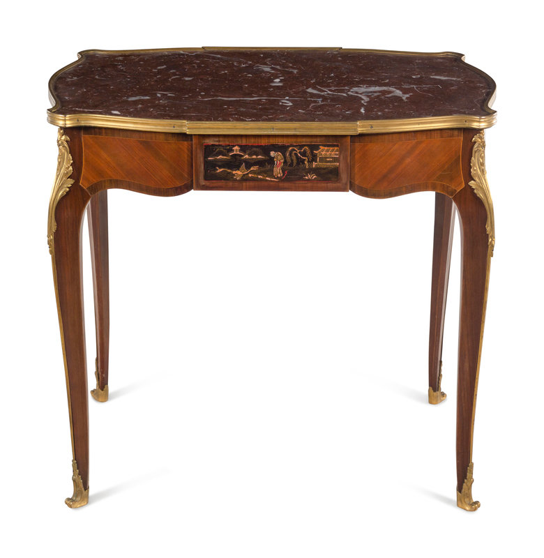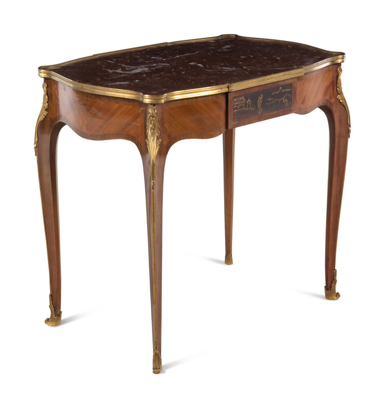 A Louis XV Style Gilt Bronze Mounted Kingwood Marble-Top Table