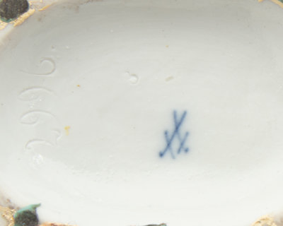 the example with a floral crown incised 2991 and impressed 8; the other example incised 2996 and impressed 8; each further bearing crossed swords in underglaze blue to the underside.
