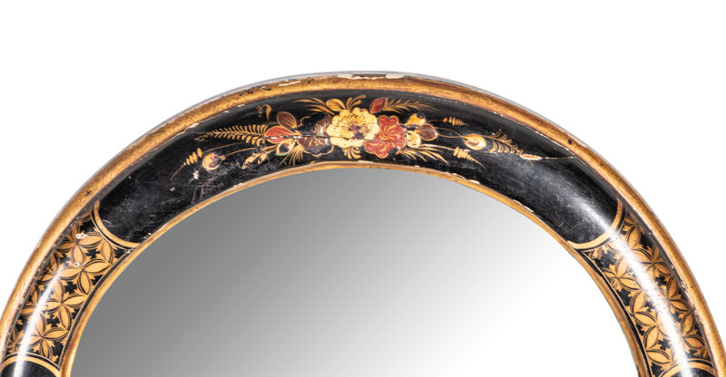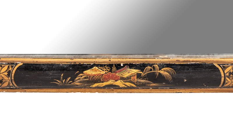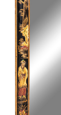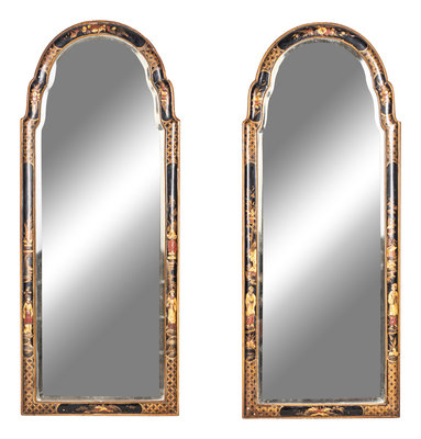 A Pair of Queen Anne Style Black Lacquer and Parcel Gilt Mirrors