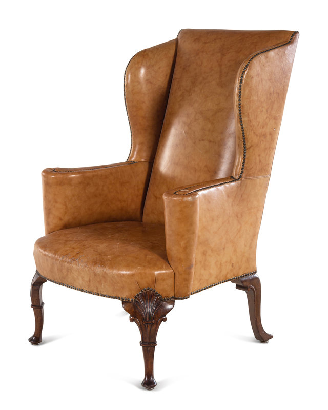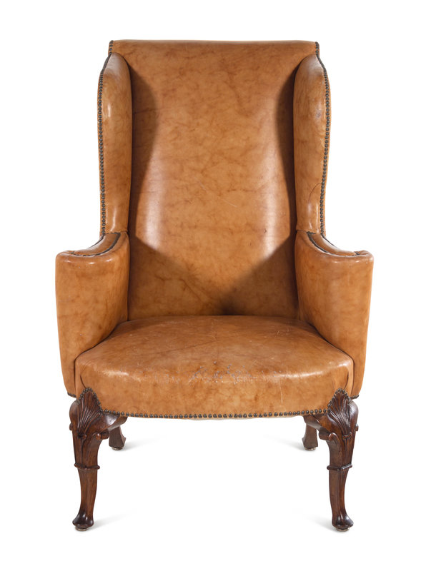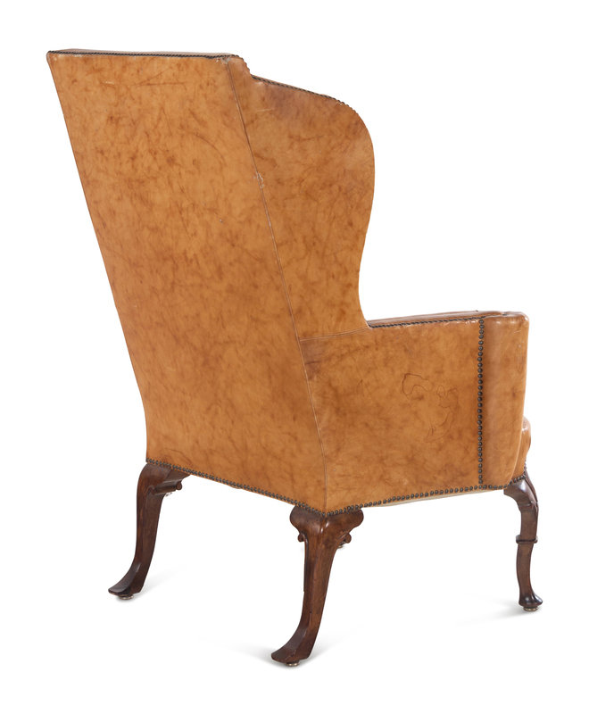 A Georgian Style Faux Leather Upholstered Walnut Wing Chair