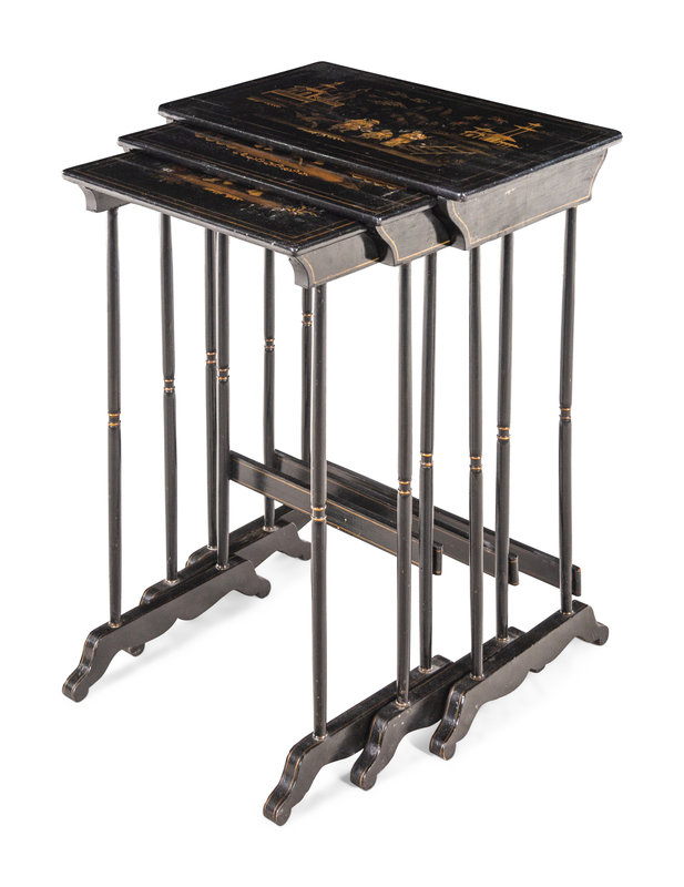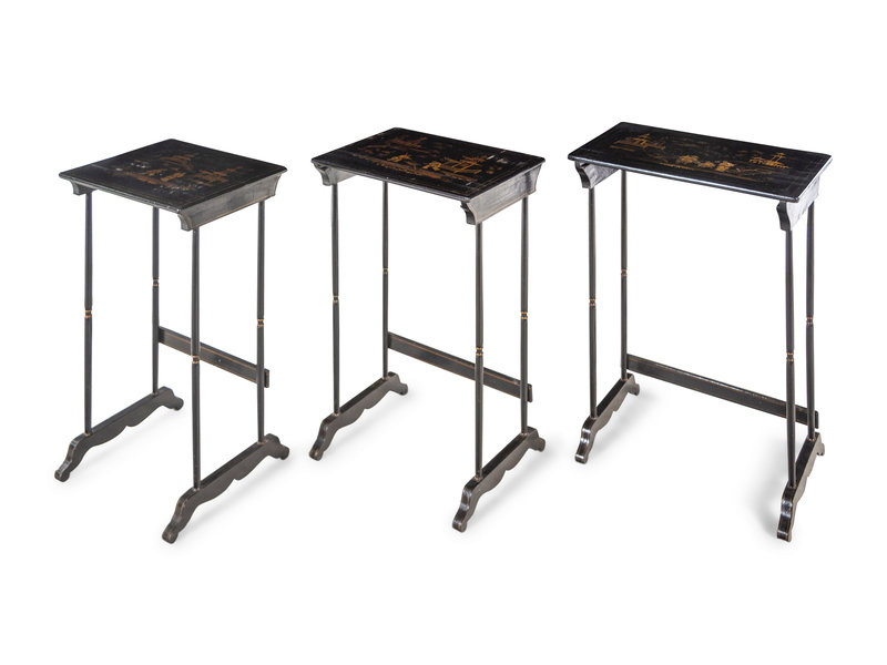 A Set of Regency Black Japanned Nesting Tables