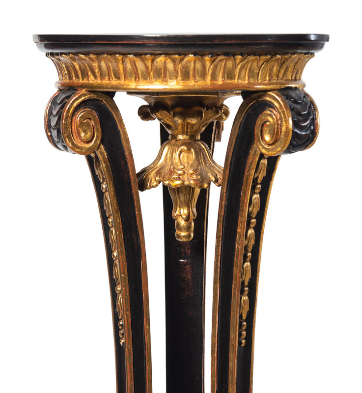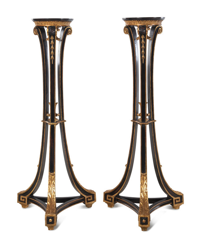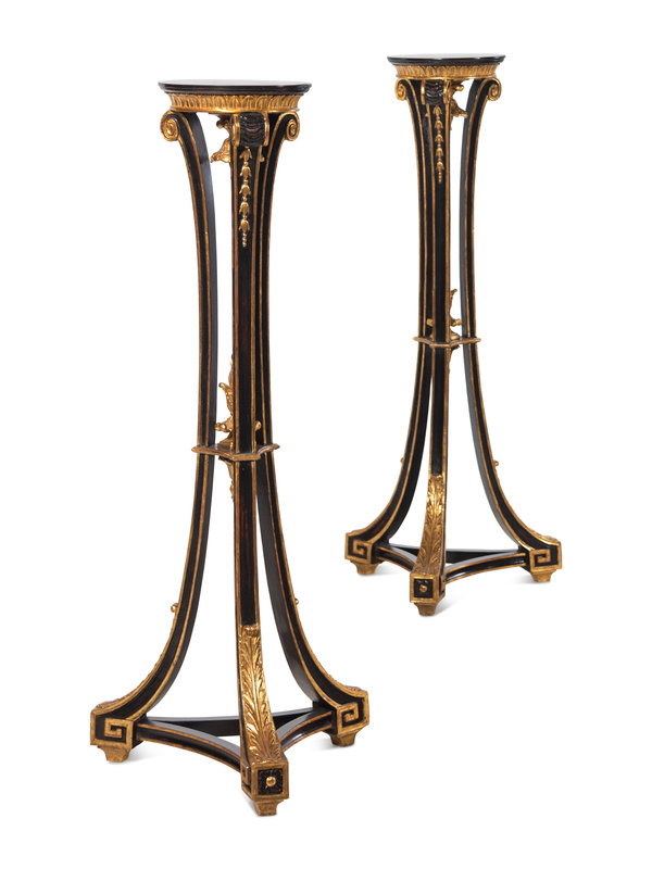 A Pair of Regency Style Black Painted and Parcel Gilt Pedestals