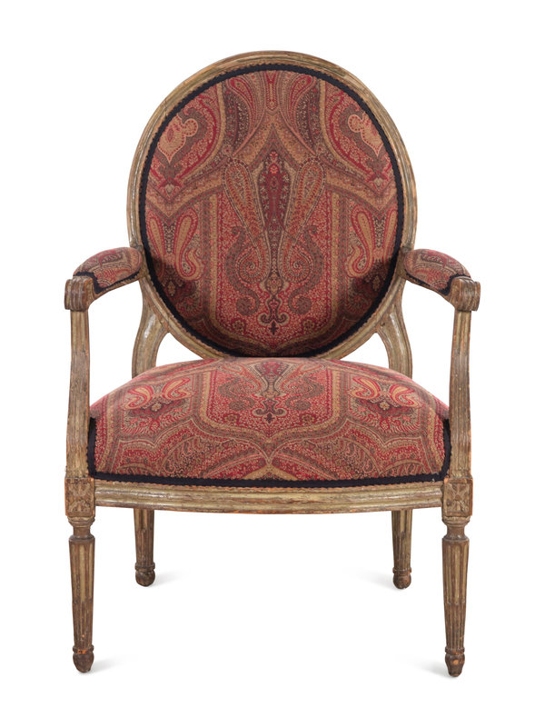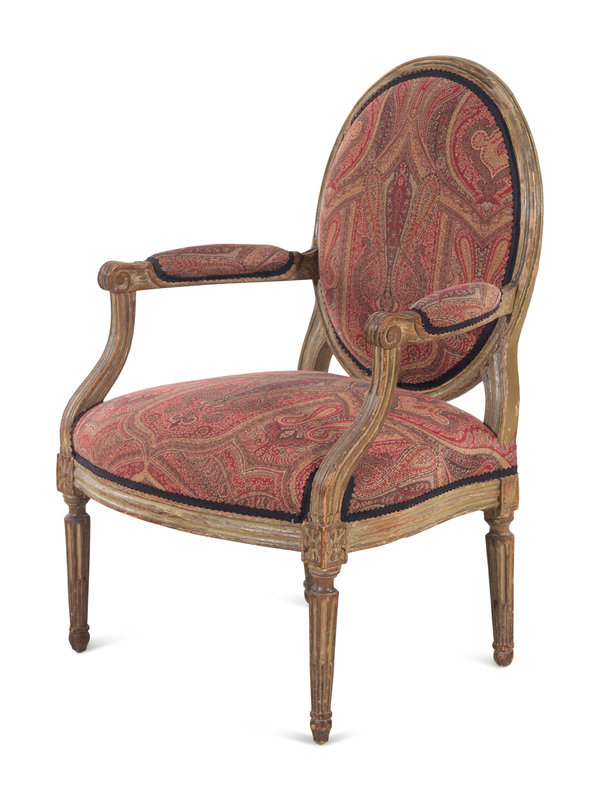A Louis XVI Painted Fauteuil with English Upholstery