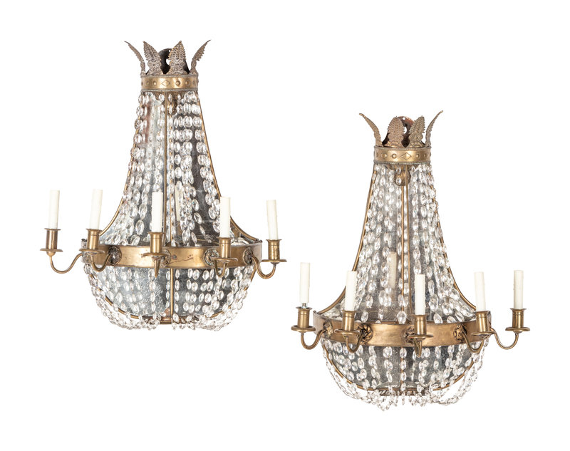 A Pair of Regency Style Silvered Tôle and Glass Five-Light Wall Lights