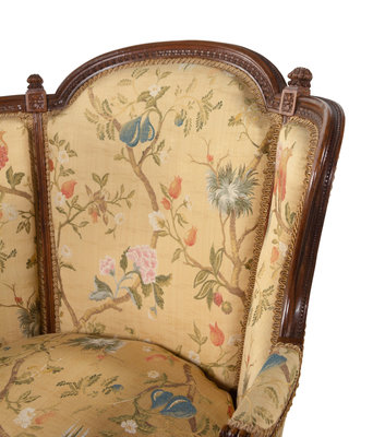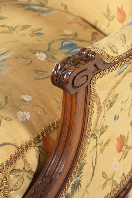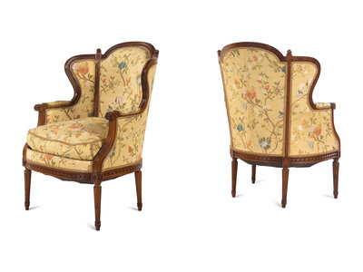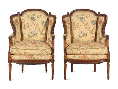 A Pair of Louis XVI Style Carved Walnut Bergères