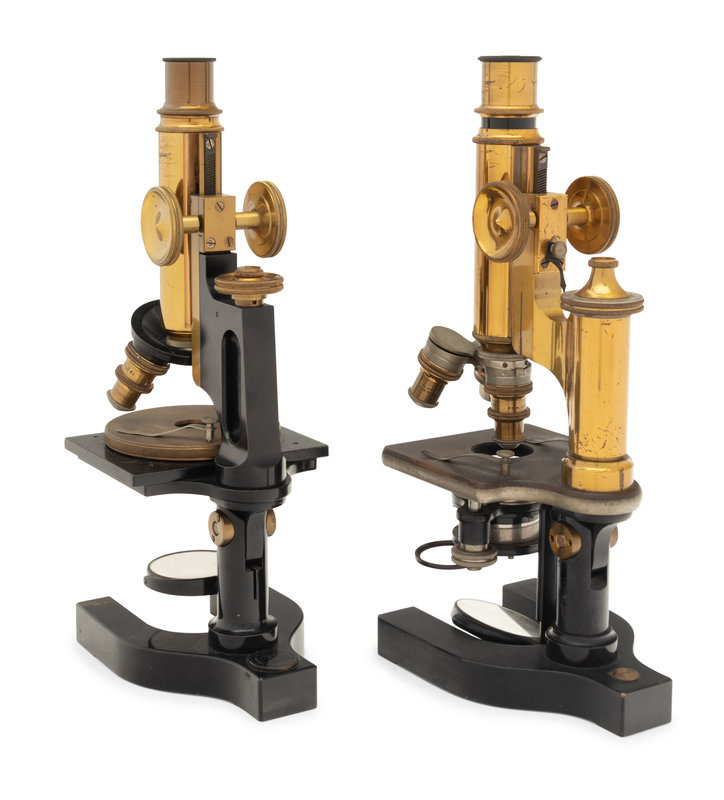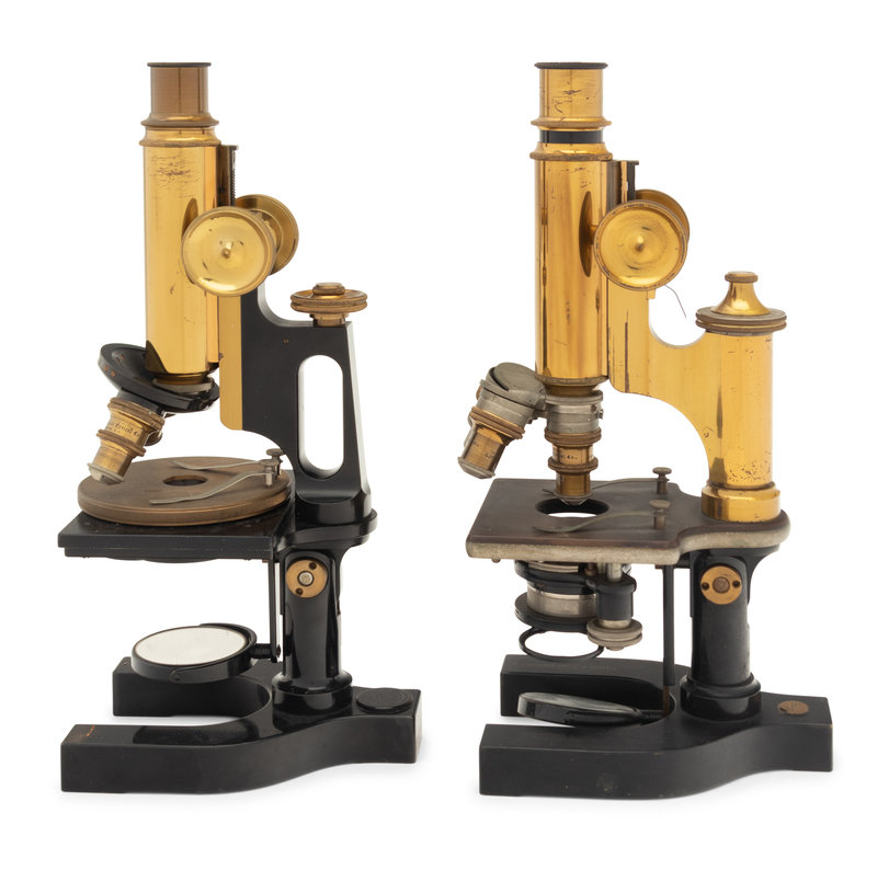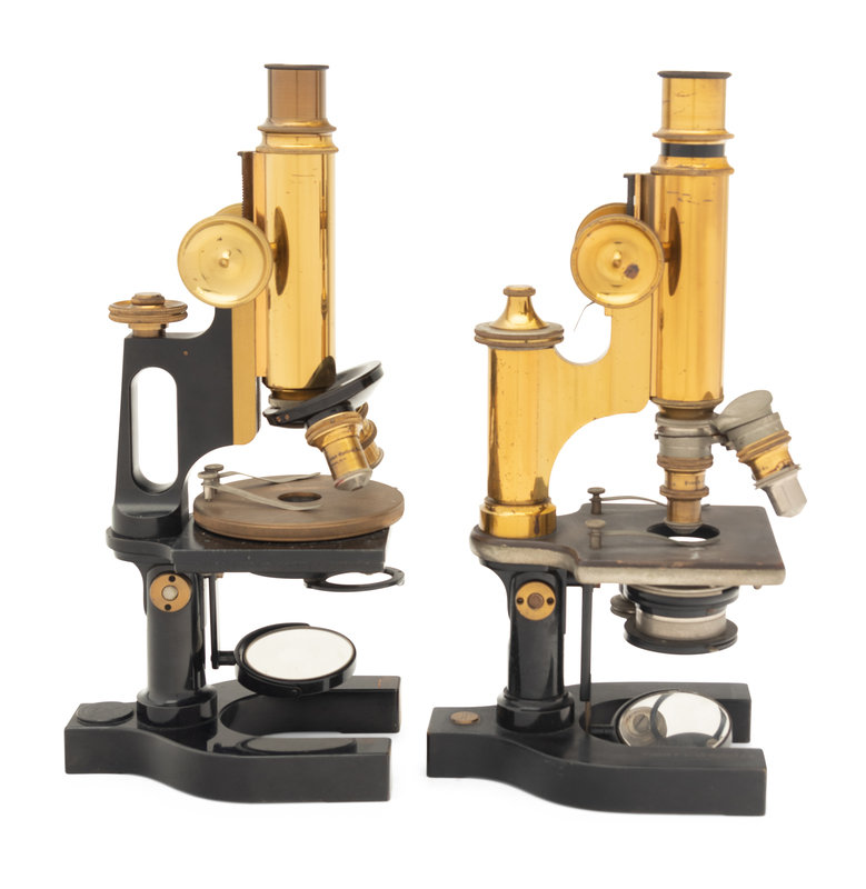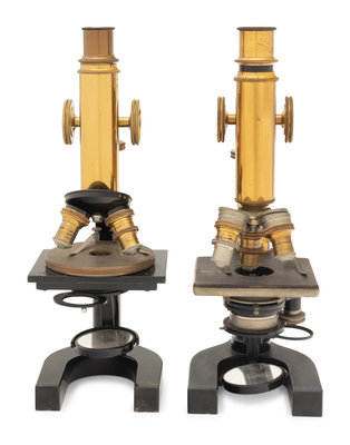 Two Bausch & Lomb Brass and Black Lacquered Microscopes