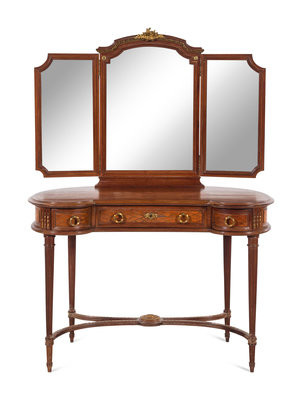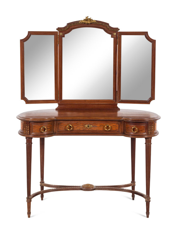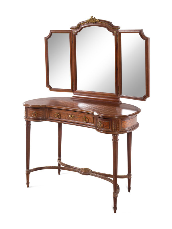 A Louis XVI Style Gilt Bronze Mounted Parquetry Decorated Dressing Table