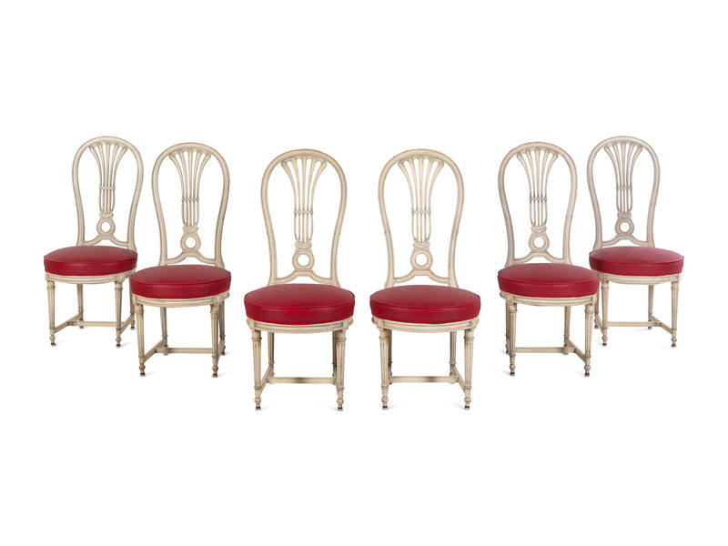 A Set of Six Louis XVI Style Painted Montgolfière Dining Chairs