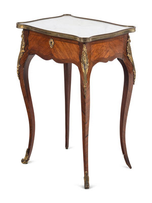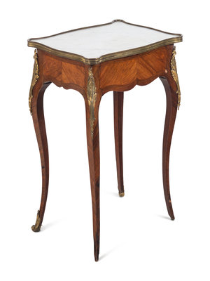 A Louis XV Style Gilt Bronze Mounted Marble-Top Side Table