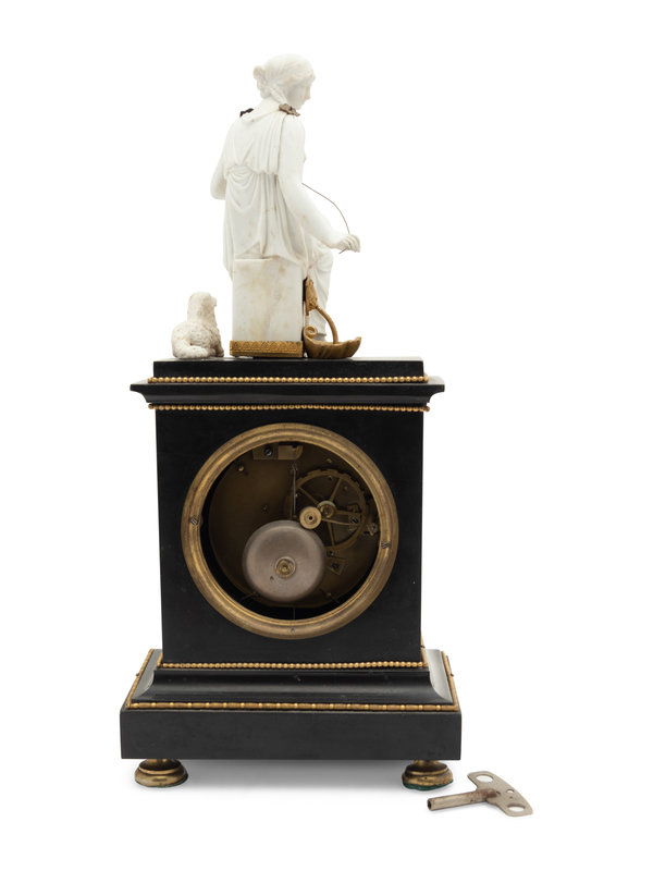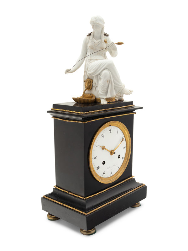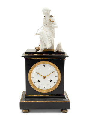 An Empire Gilt Metal Mounted Figural Mantel Clock