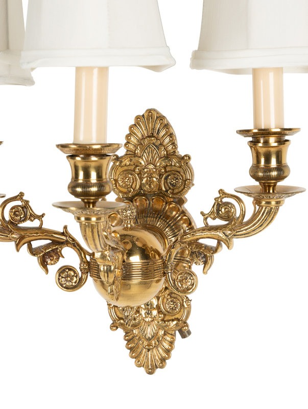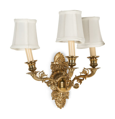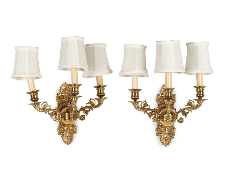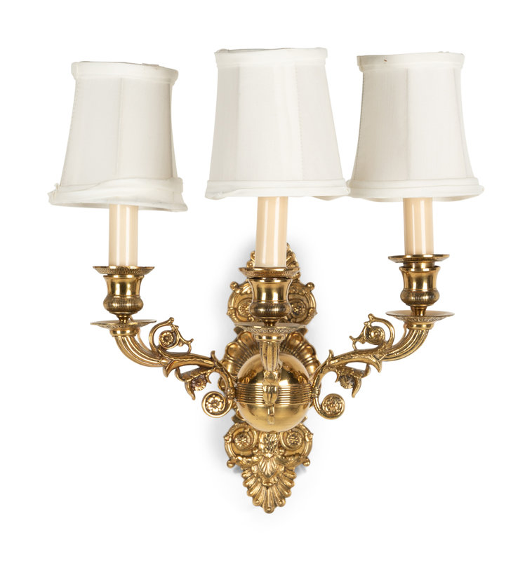 A Pair of Empire Style Brass Three-Light Sconces