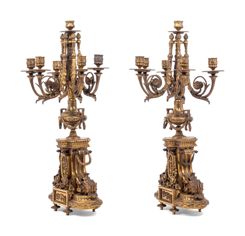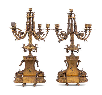 A Pair of Napoleon III Gilt Bronze Six-Light Candelabra