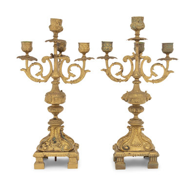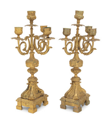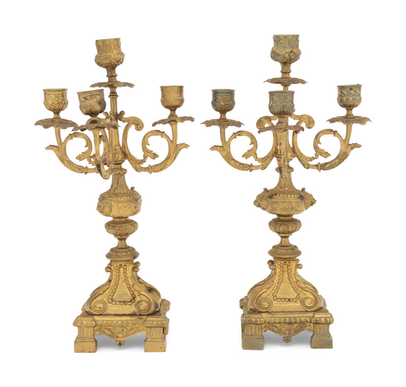 A Pair of Napoleon III Gilt Bronze Four-Light Candelabra
