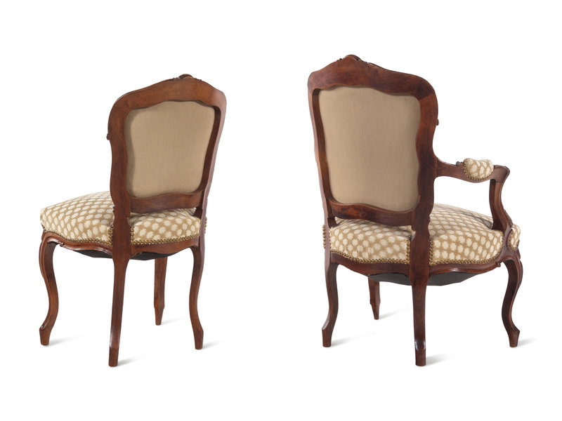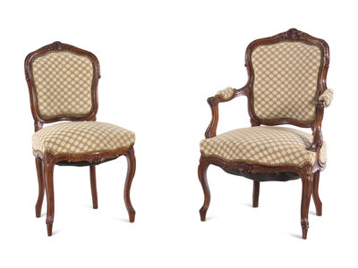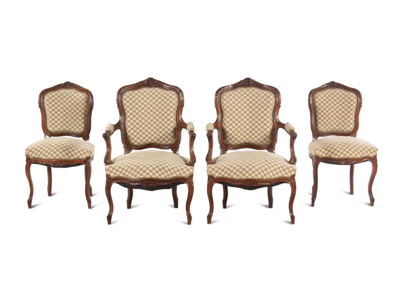 A Set of Four Louis XV Style Carved Walnut Chairs