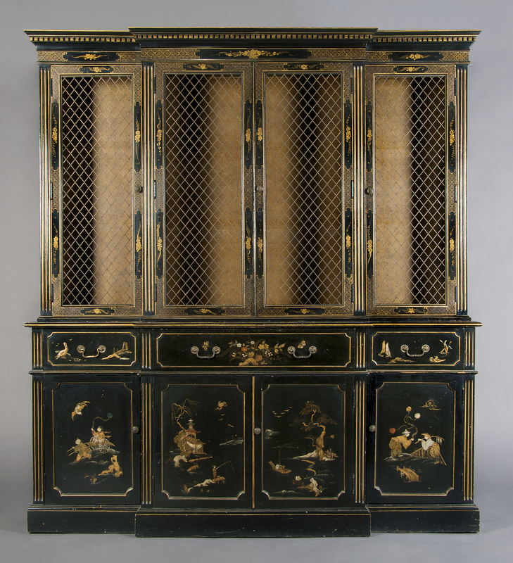 An Georgian Style Lacquered Secretary Breakfront Cabinet,