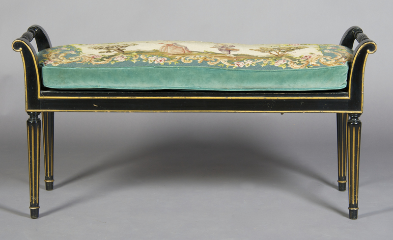 A Regency Style Black and Parcel Gilt Window Bench,