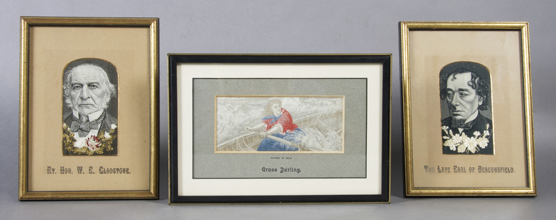 comprising portraits of the Late Earl of Beaconsfield and W.E. Gladstone, and an image of Grace Darling.