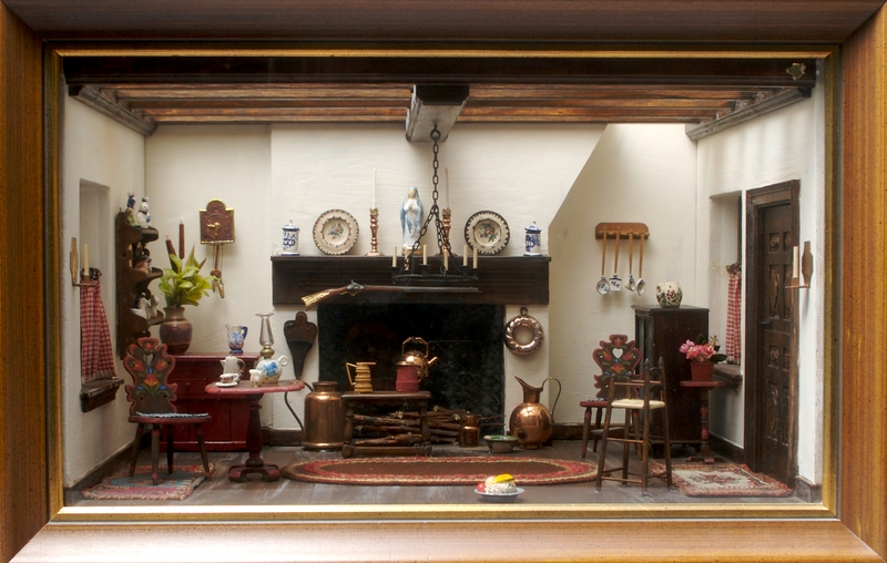 A Narcissa Thorne Shadow Box Diorama of a Rustic Kitchen,