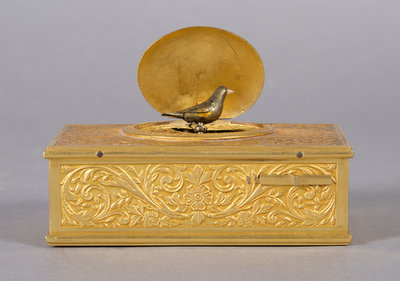 A Continental Gilt Bronze Singing Bird Box, probably German,