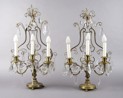 A Pair of Gilt Metal Three-Light Candelabra,