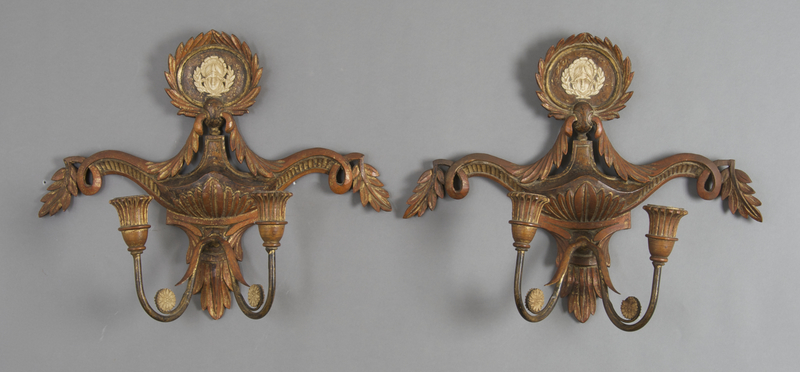 A Pair of Parcel Giltwood Two-Light Sconces,