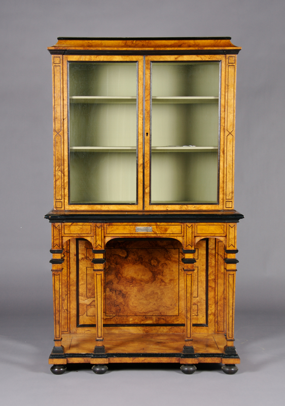 A Continental Burlwood and Ebonized Cabinet on Stand,