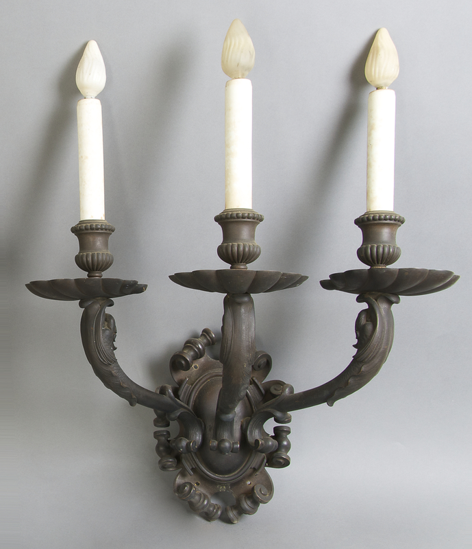 A Set of Four Neoclassical Three-Light Sconces, Caldwell,