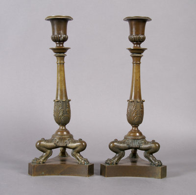 each having a baluster form standard over three paw feet set on a tripartite base.