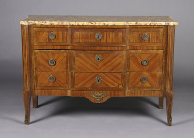 A Louis XVI Style Parquetry and Gilt Metal Mounted Commode,