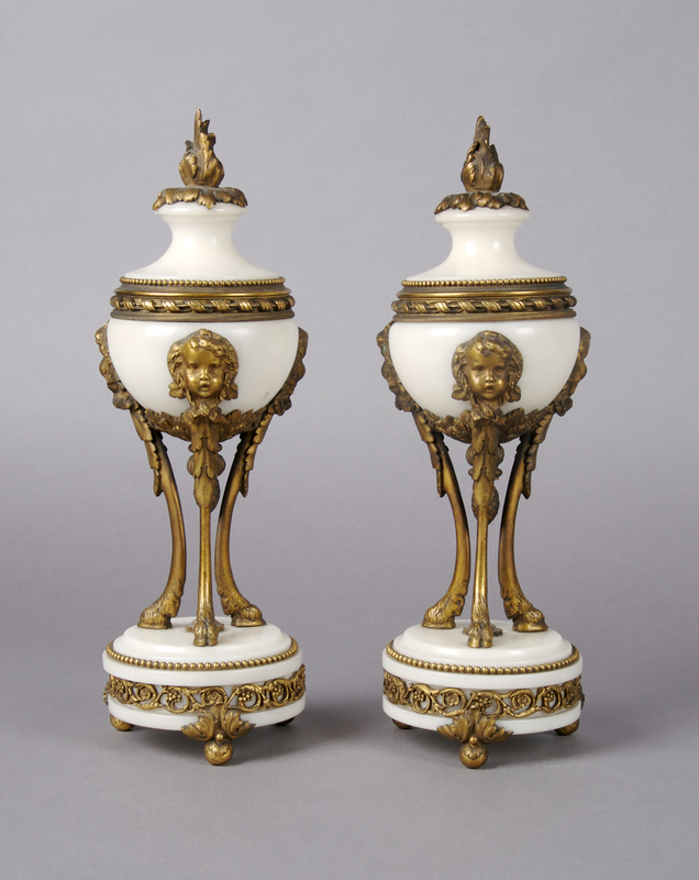 A Pair of Louis XVI Style Marble and Gilt Bronze Cassolettes,