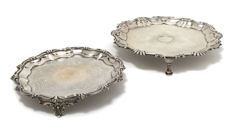 A Group of Two English Sterling Silver Salvers,