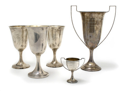 together with two trophies.