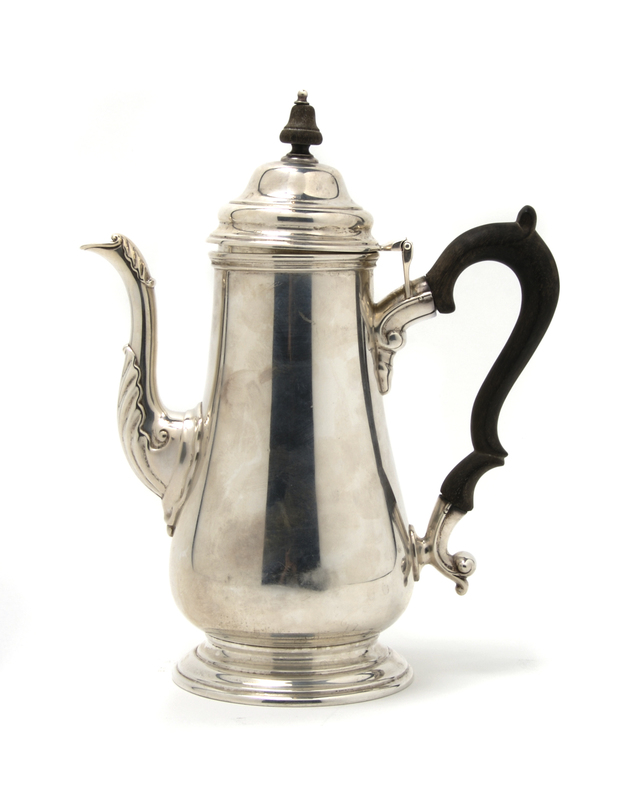 of tapering form with wood handle and finial, stamped 'Limited Edition Tea Service.'