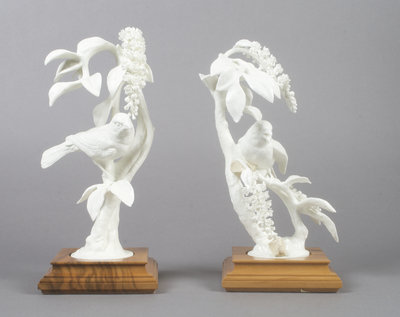 A Pair of Royal Worcester Dorothy Doughty Birds, Lazuli Buntings,