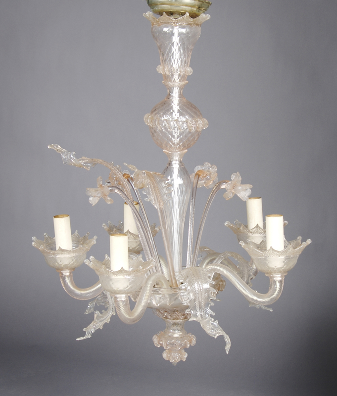 A Venetian Glass Five-Light Chandelier,