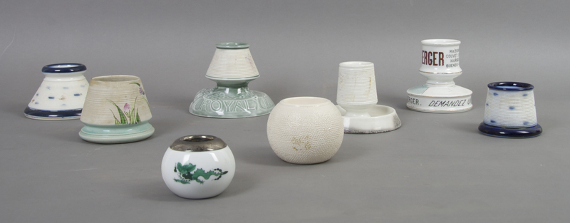 A Collection of Eight English and Continental Ceramic Match Strikes,